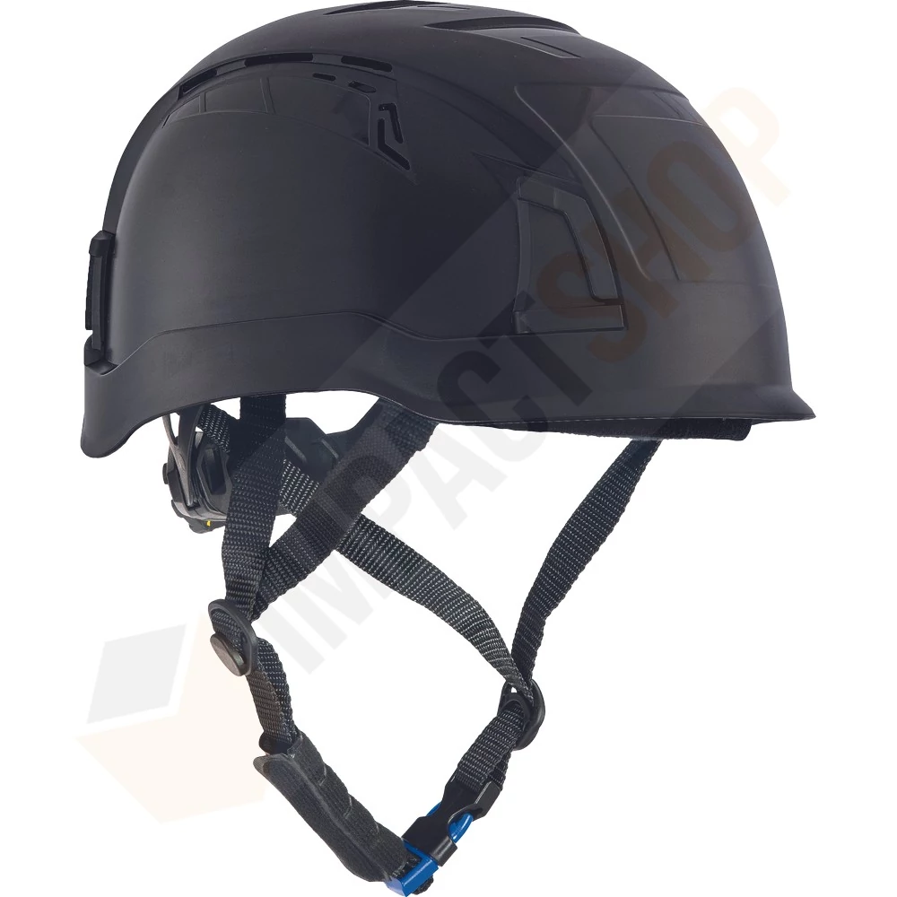 »ABS hegymászó sisak szellőző kivitelben, 6 pontos fejkosárral. A méret (53-66 cm) racsnis kerékkel állítható. A fejvédő beépített izzadság- és nyakpánttal, cserélhető hevederrel készül, hallásvédőkkel kompatibilis kialakításban. Hőmérséklet: -30°C- tól +50°C-ig. Élettartam: 5 év. Súly: 470 g.
