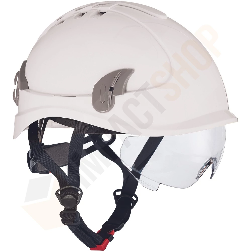 » könnyű,, magasban végzett munkára alkalmas PC védősisak szellőző kivitelben » speciális konzolokkal felszerelt a kiegészítők rögzítéséhez » rövid szemellenzővel készült » mérete racsnis kerékkel állítható 53-66 cm között » 6 pontos textiheveder, egyedi, 4 állású mélységbeállítás, 4 pontos állszíj t» » tömeg: 460 g » hőmérséklet: -30°C-tól + 50°C-ig » élettartam» 5 év» szabvány EN 397 » az integrált szemüveg megfelel az EN 166 szabványnak » a csere ALPINWORK szemvédő a 050105948199 cikkszámon rendelhető, amely kifejezetten ezzel a sisakkal kompatibilis
