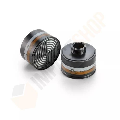 Termékleírás: A2B2 kombinált szűrőbetét 20401 PANAREA teljesálachoz és 6EUR100NSI EURMASK félálarchoz * A:65 °C-nál magasabb forrpontú oldószerek, szerves gázok, gőzök ellen; B:szervetlen gázok, gőzök ellen (kivéve CO) * DIN menetes * A szűrőbetét házának alapanyaga HDPE, * Szűrőanyag aktív szénből és szűrőszövet PP-ből, gomba- és baktériumellenes szerekkel kezelve.