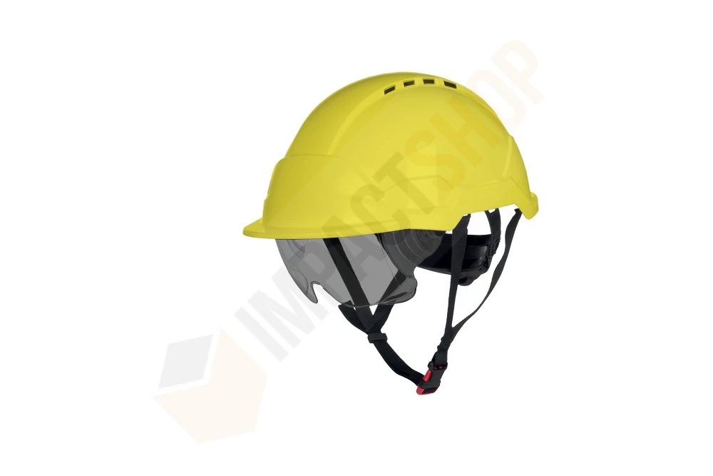ABS sisakhéj * 6 ponton rögzített LPDE sisakkosár, 6 textil hevederszalaggal * Racsnis méretállítás 52-63 cm-ig * Szellőzőnyílások * A rövid sildnek köszönhető megnövelt látótér * Beépített, szabvány szerint karcmentes (K) és páramentes (N) védőszemüveg, íválló tulajdonsággal (8) és olvadt részecskék elleni védelemmel (9) * 3D textil izzadságszalag * 4 pontos állszíj, EUROSLOT adapter nyílások oldalt * Oldalirányú deformáció elleni védelem (LD) * Olvadt fémcseppek elleni védelem (MM) * Alacsony (-30°C) hőmérsékleten is megtartja a védelmi képességét Súlya: 450 g * Kompatibilis a 6POBA névkártya tartóval és a 6MX3000NSI fültokkal