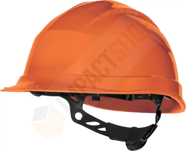 Rotoros rendszerrel ellátott, rövid szemellenzős építőipari sisak a könnyű beállítás érdekében